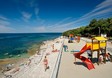 Strand: 50-200 m-re „Kék Zászló"-s, füves, köves, sziklás és kiépített partszakasz napozó teraszokkal, zuhanyzókkal, valamint napernyő- és napozóágy-kölcsönzéssel.